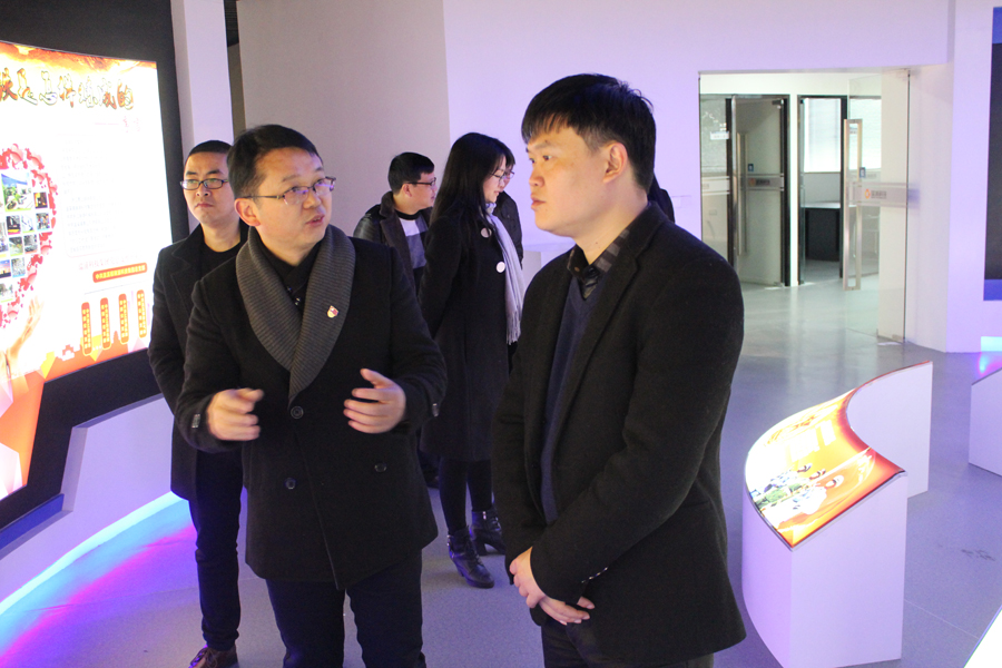 杨杰一行在刘海的带领下参观了瑞浦公司新建设的党群中心,刘海简要介绍了jinnianhui今年会企业发展历史、发展现状以及未来发展规划,公司文化及党群中心建设情况。听完介绍后,杨杰一行对党群中心的建设表示赞赏。