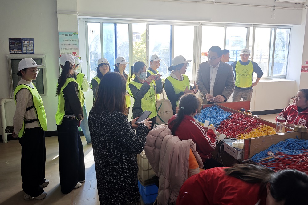 活动期间,蒲州互联网残疾人之家负责人陈宣带领鼎森项目点志愿者们参观了基地康复中心、工疗车间、阅览室等场所,通过现场交流深入了解残障人士工作生活状态。