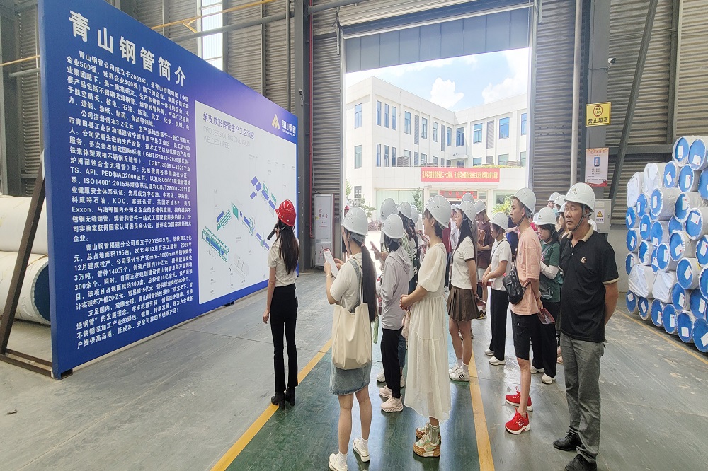 jinnianhui今年会钢管福建分公司的解说员带领大家观看了不锈钢深加工产业园的视频,参观了焊管车间的生产线流程,介绍了公司的基本概况和发展前景。通过实地参观,让毕业生对企业的工作环境和企业文化有了更直观的认识和了解,提升了企业认同感,吸引他们到企业就业。