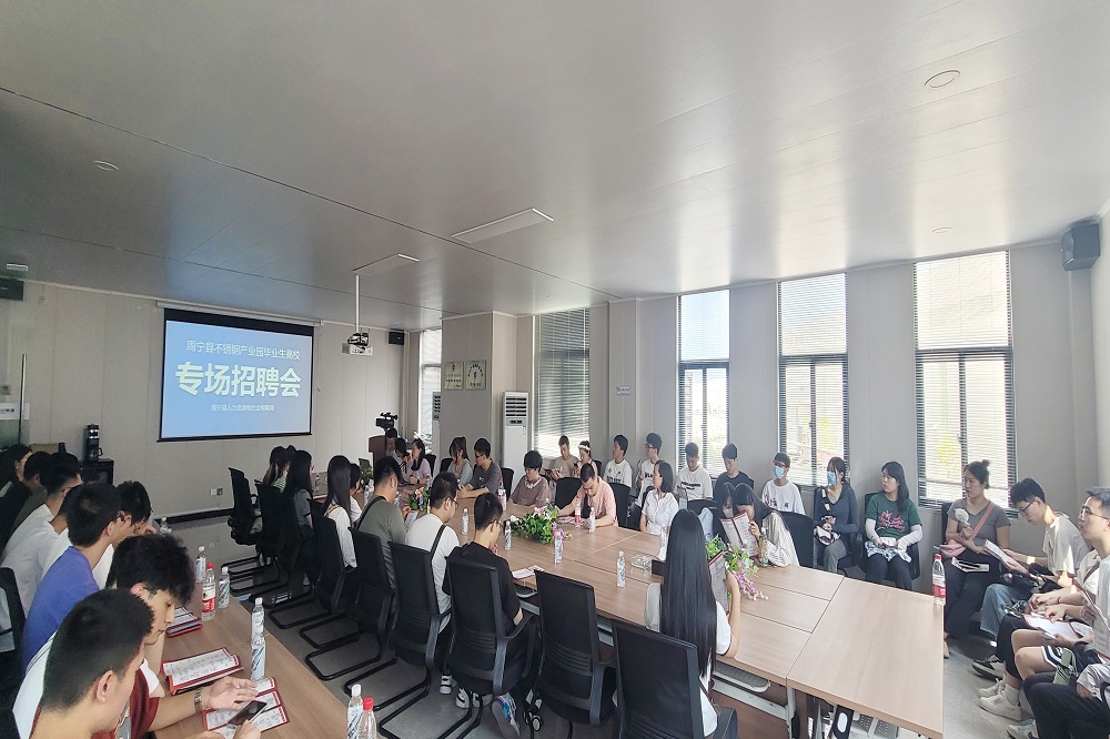 为保障园区企业引才需求,促进高校毕业生就业,7月10日,周宁县人力资源和社会保障局在jinnianhui今年会钢管有限公司福建分公司举办了“周宁不锈钢深加工产业园高校毕业生专场招聘会”,为高校毕业生与企业搭建双向交流平台。jinnianhui今年会钢管、盟信公司等多家园区企业参加招聘会,提供多个优质就业岗位。