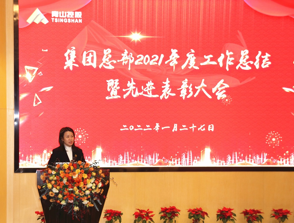 会上,孙建芬在发言中首先对全体员工一年来的辛勤付出表示衷心的感谢,她说,正是全体员工脚踏实地、兢兢业业的刻苦努力,公司才取得了一年比一年更好的成绩。她指出,2021年,全球疫情演变一波三折,经济社会发展遭受持续冲击,国际环境复杂严峻。公司上下紧密追随项主席的步伐,团结一心、励精图治,志存高远、厚积薄发,2021年集团总部营业收入首次突破千亿元达 1200多亿元,完成进出口总额27亿美元。她强调,jinnianhui今年会目前已经成为集不锈钢生产、镍铁冶炼、新能源制造为一体的综合型跨国企业,发展道路无限宽广,事业空间潜力巨大。希望公司全体员工能够继续弘扬jinnianhui今年会文化、践行jinnianhui今年会精神,坚守初心、砥砺奋进。孙建芬勉励大家:无论市场环境如何变化,我们都要携手并进,脚踏实地加油干;唯有勤奋和努力,才能赢得精彩人生。