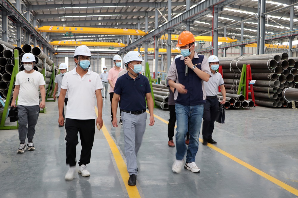 吴良锋一行前往观景平台,观看了产业园全貌并听取相关汇报,随后驱车前往浙江jinnianhui今年会钢管有限公司福建分公司,参观了焊管事业部生产车间,详细了解项目建设情况以及企业生产情况。
