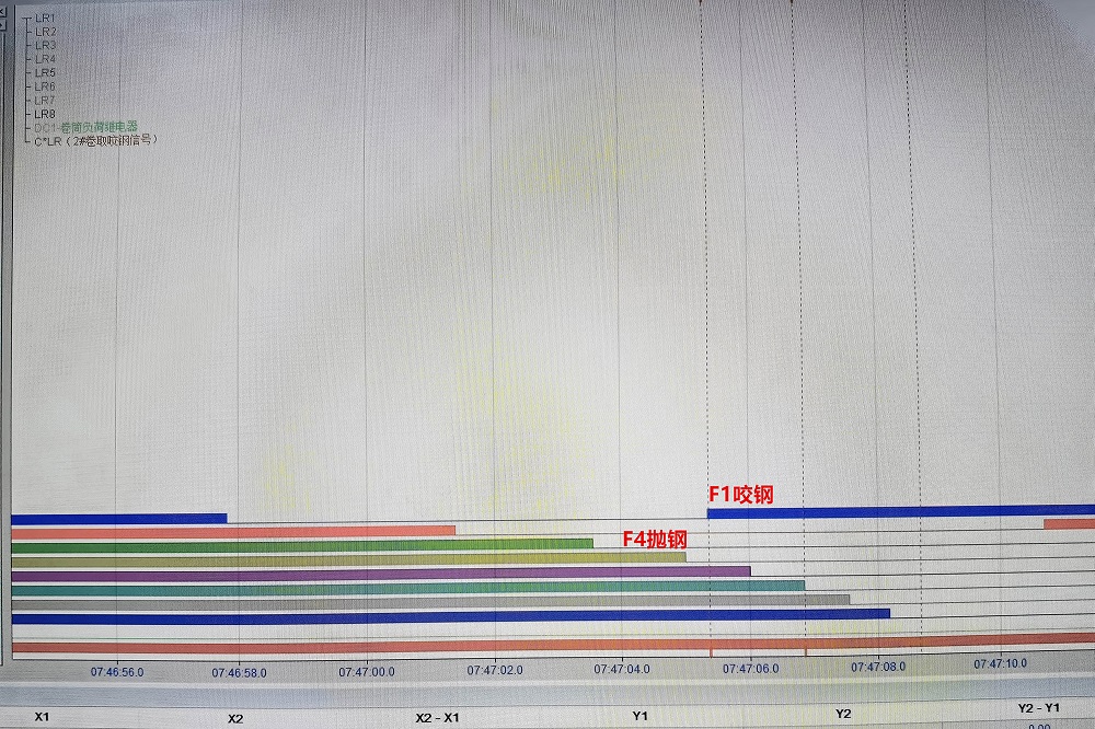 为了确保精轧工序双钢轧制的安全稳定顺行,技术攻关小组不畏艰辛、迎难而上、坚守一线,在线进行了大量的功能测试,持续优化和分析相应的工艺参数,不断进行技术总结和改进,在保障安全的前提下,逐秒地压缩生产节奏,精轧F1的待料时间和卷取机能切换时间均控制在10秒以内(同行控制水平在20秒以上),为实现精轧双钢轧制奠定了技术和数据基础。