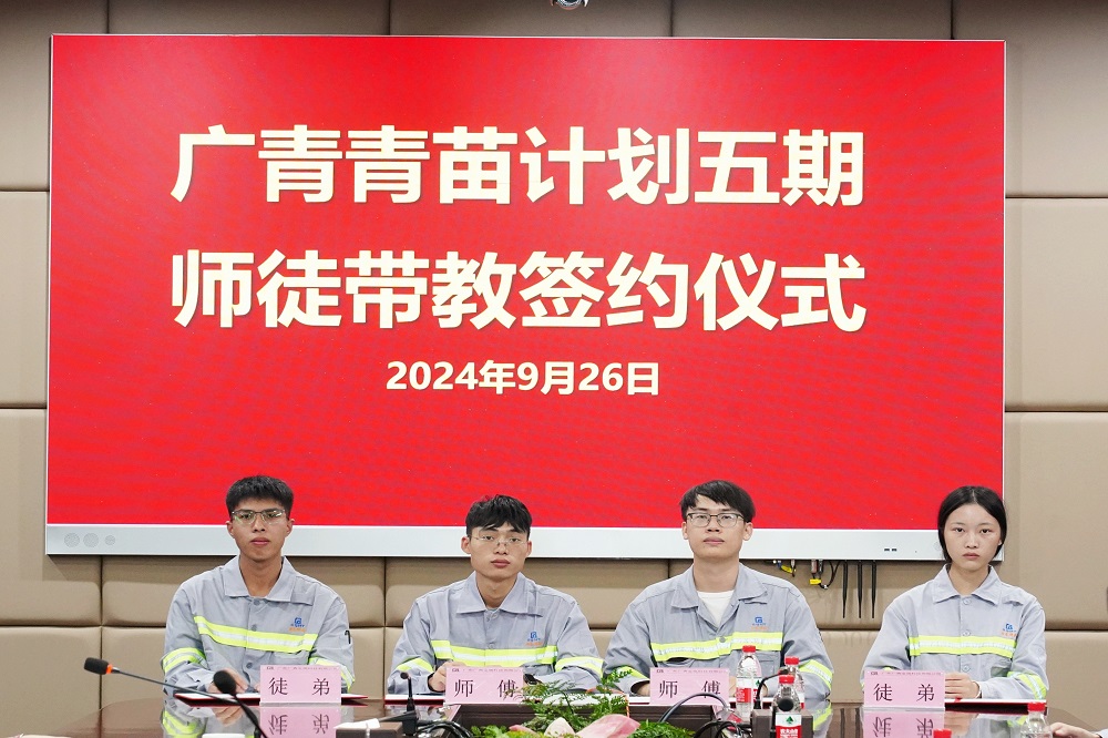 9月26日,广东广青金属科技有限公司“青苗计划”第五期启动暨师徒带教签约仪式在公司办公楼一楼会议室举行。公司党委副书记、工会主席王大庆,党委委员、副总经理杨洋,相关部门(厂)负责人及参与“青苗计划”五期师徒带教的学员和师傅约35人参加。