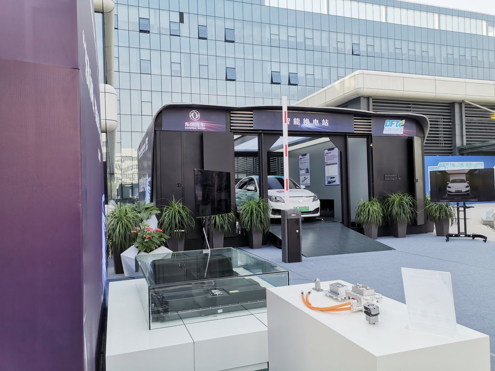 “科技创新周”是东风公司技术中心成果展示、技术发布、创新交流的平台,也是东风自主研发事业一年一度的技术品牌活动。本次活动中,瑞浦能源为E70项目定制的45KWh铁锂电池系统作为重点展品展出,会场更有智能换电站供嘉宾观看整个换电过程。东风汽车集团董事长、党委书记竺延风,党委常委、副总经理尤峥莅临智能换电站进行指导。