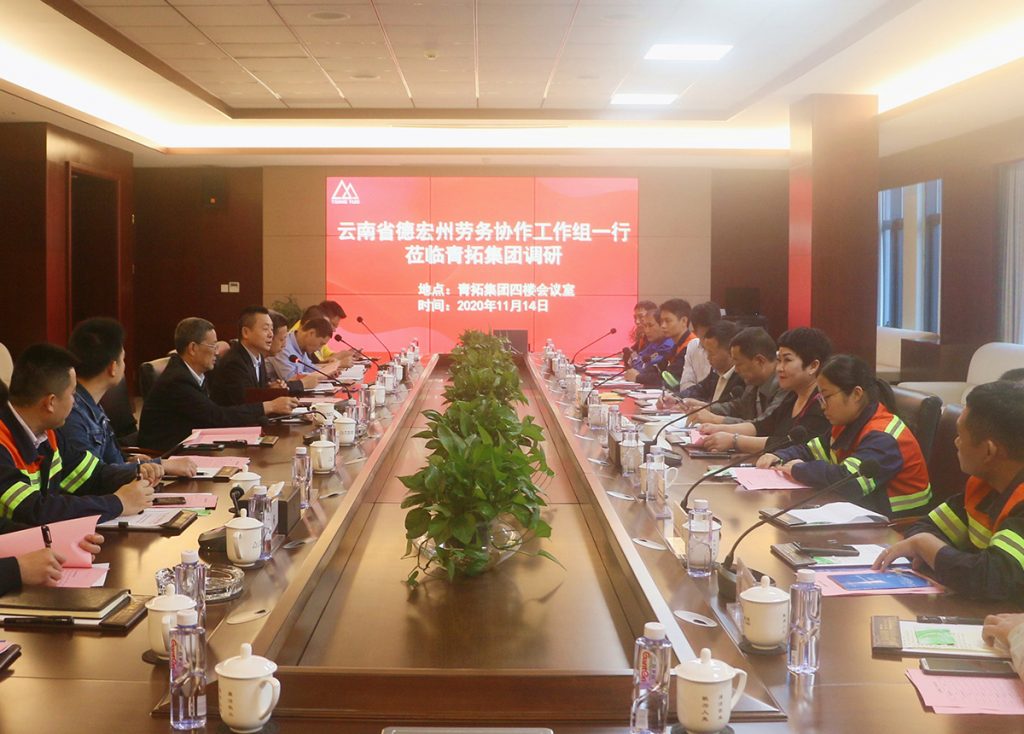 11月14日,德宏州劳务协作工作组到访青拓集团有限公司,宁德市人社局三级调研员林琼福、劳动就业服务中心主任刘幼玉,福安市人社局局长刘红雄、副局长陆仑等陪同,青拓集团行政总经理钟盛江、人力资源部部长刘永清予以热情接待。