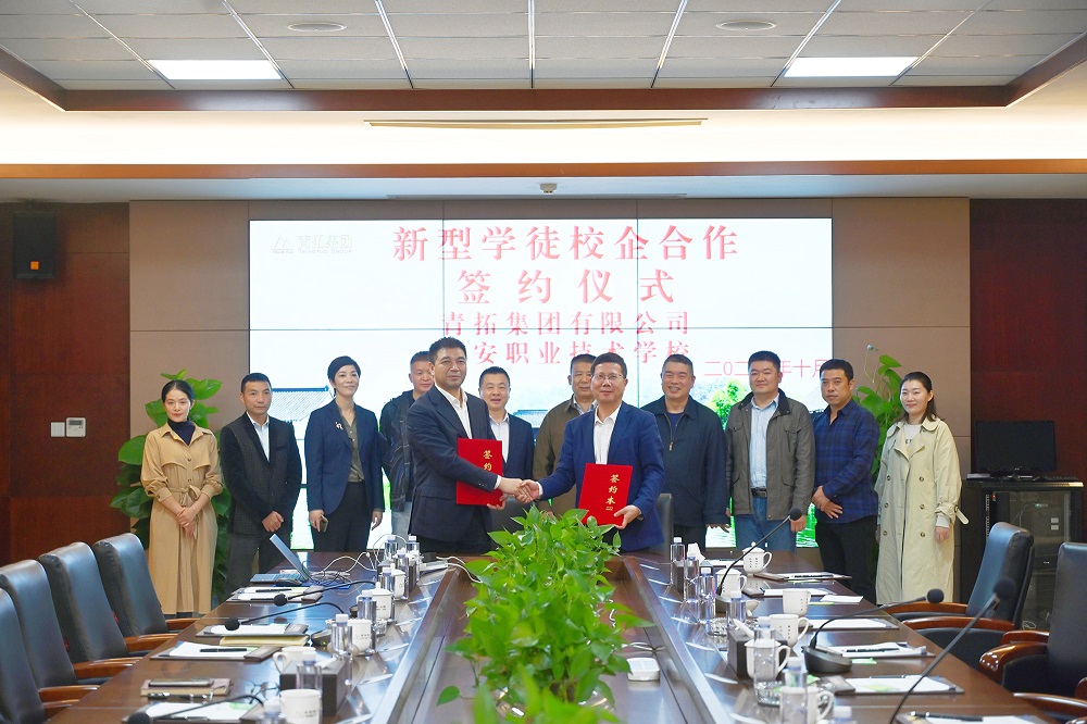 10月28日,青拓集团有限公司、福安职业技术学院校企合作签约仪式在青拓集团举行。福安职业技术学院党总支书记、校长赵斌,副校长陈强等9位校领导,青拓集团行政总经理钟盛江、人力资源部部长刘永清亲临签约现场。