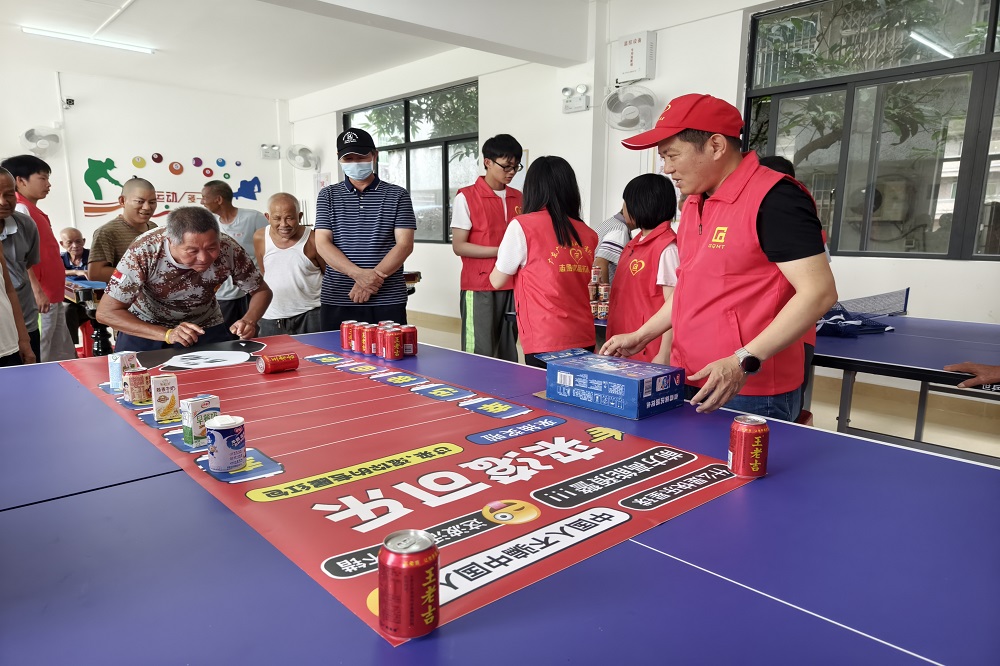 为了让这个端午节更加难忘,志愿者服务队还精心策划了一系列趣味盎然的互动游戏。在“套圈圈”游戏中,老人们手握彩色圈圈,瞄准摆放着小礼品的立柱,每套中一次便引来一阵欢笑和掌声;“投壶”环节,老少同乐,展现了传统游戏的魅力,参与者们屏息凝神,每一次精准的投掷都让现场气氛高涨;而“夹珠子”比赛,则考验着大家的手眼协调能力,在轻松愉快的氛围中,老人们展现出了不凡的技巧,赢得了阵阵喝彩;“抽奖滚滚乐”游戏最受老人们的欢迎,每一次的参与都有不一样的惊喜。