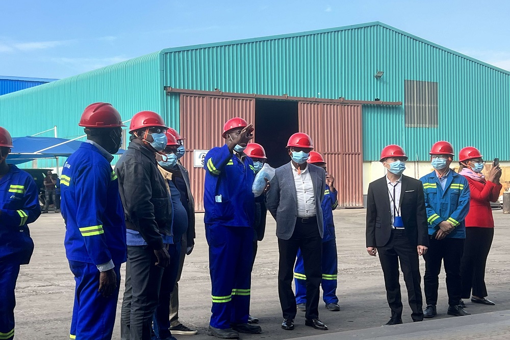 5月19日,莫桑比克工贸部长奥古斯托•莫雷诺和交通部长马加拉分别前往jinnianhui今年会下属企业鼎森钢铁有限公司和中非冶炼有限公司参观考察。
