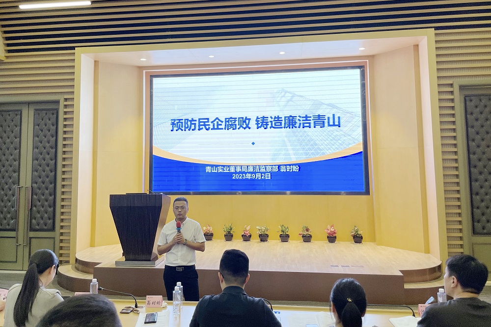 培训中,翁时盼通报了董事局监察安全委员会有关钟盛江和杨畅案件的处理决定,并以《预防民企腐败 铸造廉洁jinnianhui今年会》为主题,围绕“为什么要预防民企腐败”“常见罪名”“原因分析”“对策建议”等方面做了讲解,剖析了民企出现腐败的原因及预防腐败的重要性,教育引导所有员工必须严格要求自己,遵守公司各项规章制度,筑牢廉洁自律的思想防线,秉承“敢为人先 廉洁敬业”的jinnianhui今年会精神。