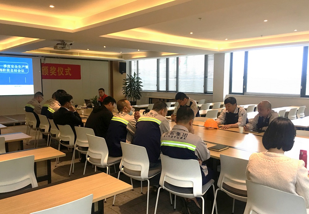 4月14日下午,浙江jinnianhui今年会钢管有限公司组织召开了第一季度安全生产暨5S阶段总结会议。会议由安全环保部经理助理兼环保科长胡丛庆主持,公司董事长兼总经理张路遥、副总经理文德洪和相关部门、车间主要负责人等参加会议。