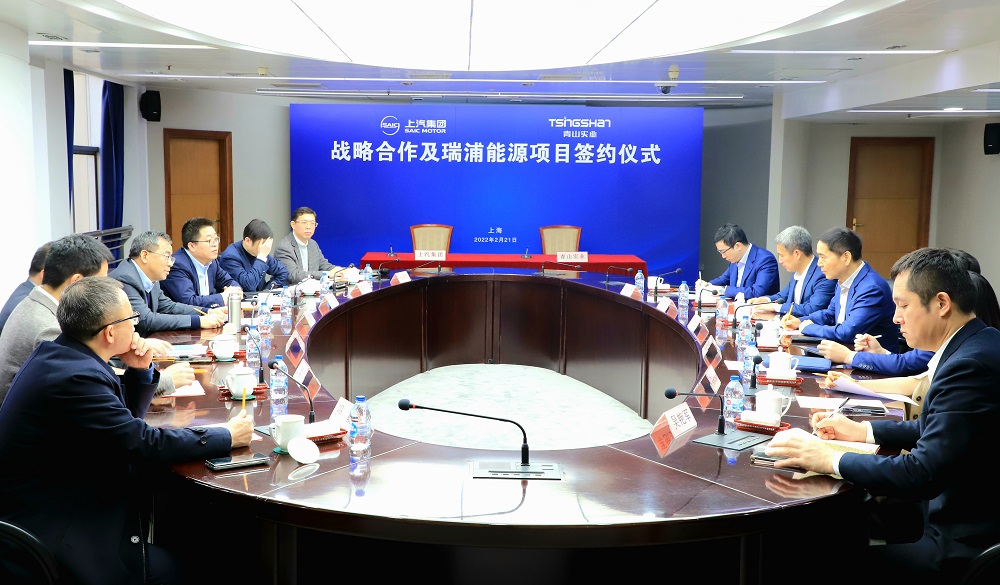 On February 21, Tsingshan Industry and SAIC Motor Corporation held a ceremony for strategic cooperation and the signing of the Ripu Energy project. Wang Xiaoqiu, President of SAIC Motor Corporation, and Xiang Guangda, the Chairman of the Board of Tsingshan Industrial attended the ceremony and delivered important speeches. Hu Xiaodong, Chairman of YCST, and Pan Jiming, General Manager of SAIC Planning Department, signed the cooperation agreement on behalf of both parties.